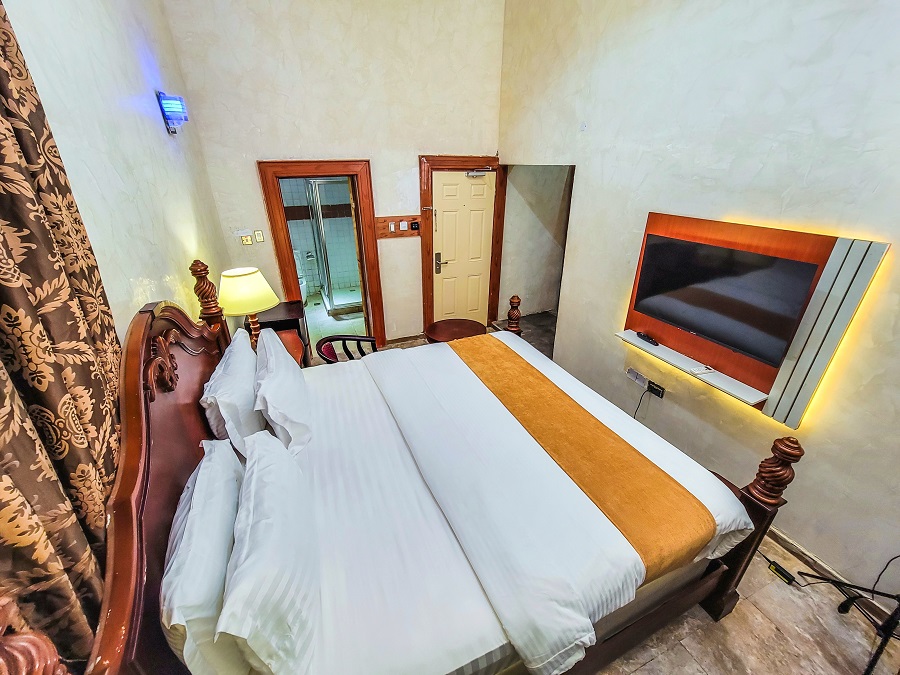 Indulge in luxury at Gallani Suites Hotel’s Diplomatic Suite. Elegantly designed, it offers a beautifully furnished interior, exquisite bathroom, king-size beds, and modern amenities. With complimentary Wi-Fi, air conditioning, and smart TVs, experience a seamless blend of comfort and opulence in the heart of Ibadan.